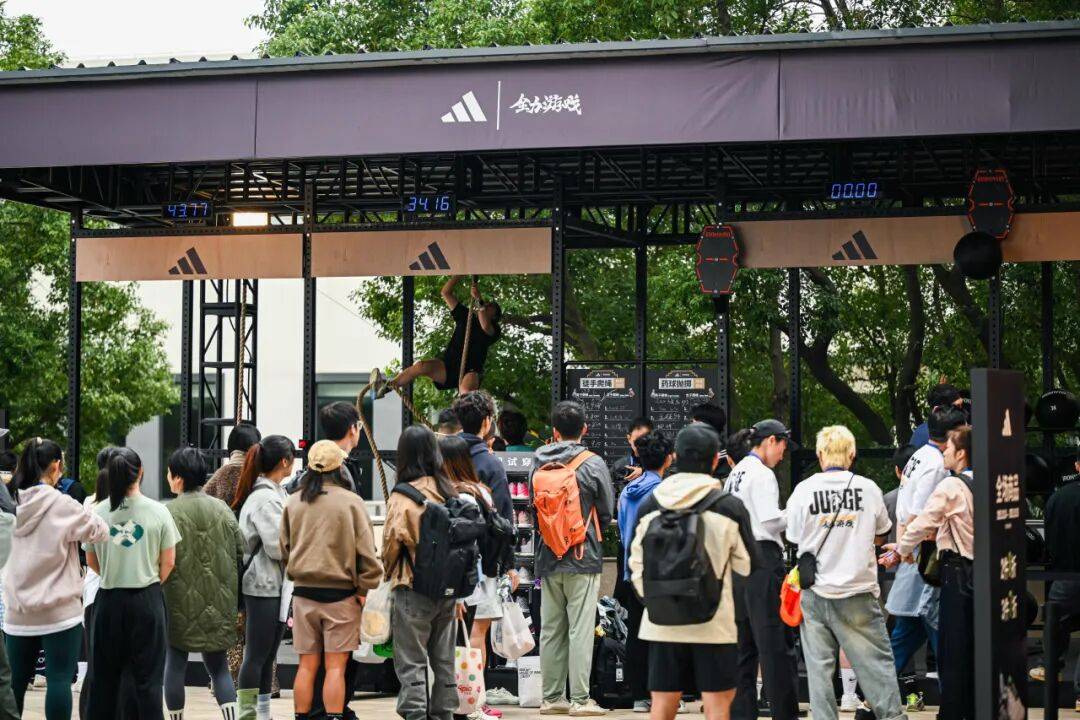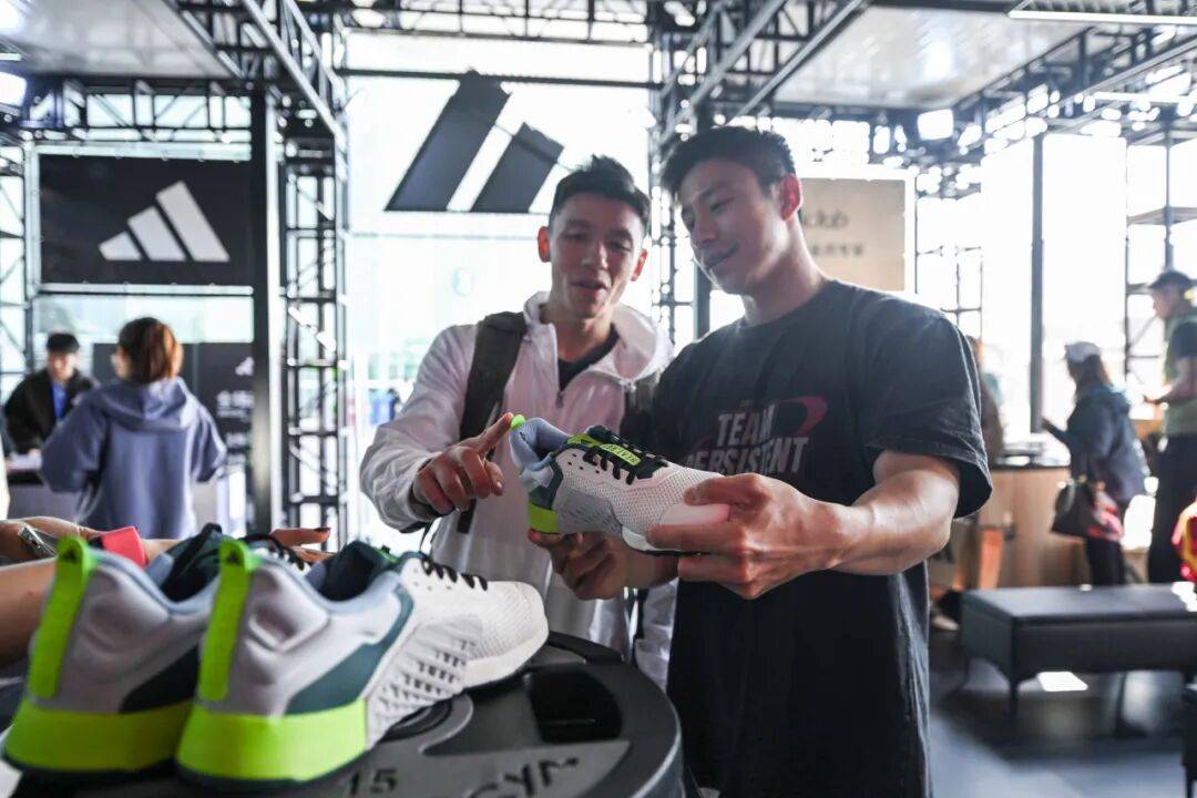 现场阿迪达斯专属展区开放全尺码DROPSET 3供现场观众上脚试穿,感受产品在实际训练中的稳定与支撑性能。展区前人气高涨,众多选手和观众驻足体验,纷纷试穿并打卡留念。