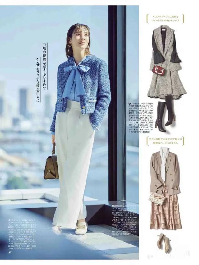 比如像下面这样内搭选择低领的打底衫、T恤,甚至还有精致的项链加持,时尚高级又不严肃沉闷,满满的高级范▼