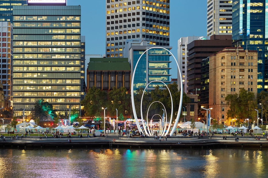 T.C.L与ARM合作,设计了澳大利亚伊丽莎白滨水码头 . 伊丽莎白码头的设计重新建立城市与天鹅河之间的历史联系,创造一个将水带回城市的入口。