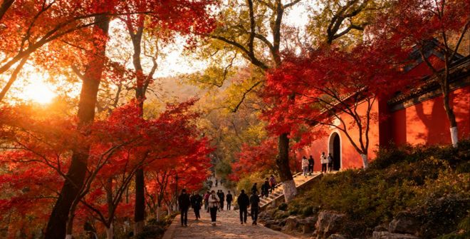 午餐为景中游定制的秋日轻食套餐,包含桂花糖芋苗、栗子糕等时令点心。午后乘专车前往栖霞山,走专属徒步路线直达 “明镜湖” 观枫点,向导讲解枫叶变色原理,还可体验古法枫叶拓印。傍晚返程时,顺访沿途乡村旅游点,参与 “稻田挖藕” 农事体验。
